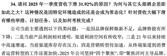 今年5月,洋河在业绩说明会上也坦诚提到,目前面临4个问题:品牌势能下降,渠道利润空间收窄,渠道库存存在压力,营销转型需要加速。