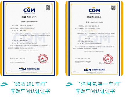 案例:践行“双碳”战略,打造行业首家零碳车间2024年,洋河股份酿酒101车间,包装一车间成功通过第三方认证机构的零碳车间审核评价,成为白酒行业首家零碳样板车间,获得全国首张零碳车间认证证书。零碳车间的建设是构建低碳白酒工厂的重要里程碑,洋河股份创新性提出以使用绿色电力和绿色蒸汽为核心的零碳车间建设及认证方案,打通了从规划到建设再到认证的全流程实施路径。