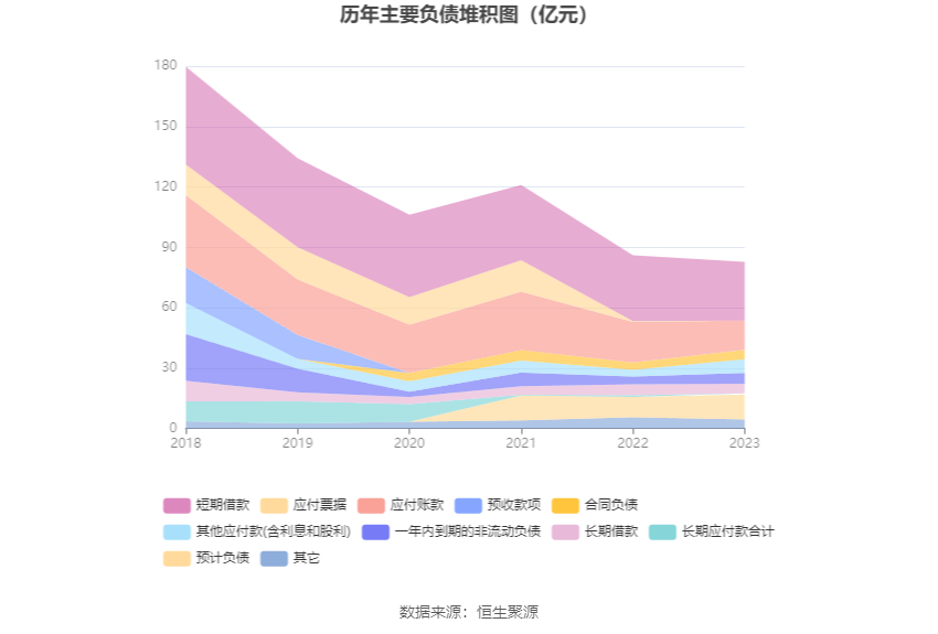 负债重大变化方面,截至2023年年末,公司应付账款较上年末减少27.58%,占公司总资产比重下降2.06个百分点;短期借款较上年末减少10.81%,占公司总资产比重上升3.76个百分点;其他应付款(含利息和股利)较上年末增加103.87%,占公司总资产比重上升5.35个百分点;预计负债较上年末增加22.03%,占公司总资产比重上升5.48个百分点。