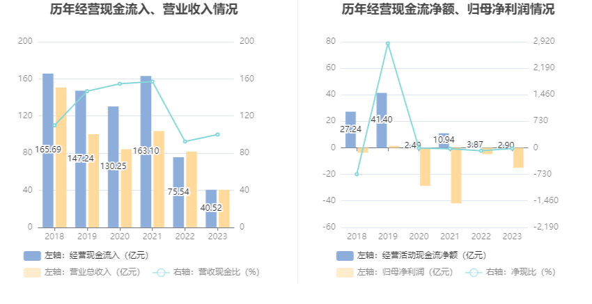 2023年,公司经营活动现金流净额为2.90亿元,同比下降25.19%;筹资活动现金流净额-2.78亿元,同比增加5.39亿元;投资活动现金流净额-1.37亿元,上年同期为5.18亿元。