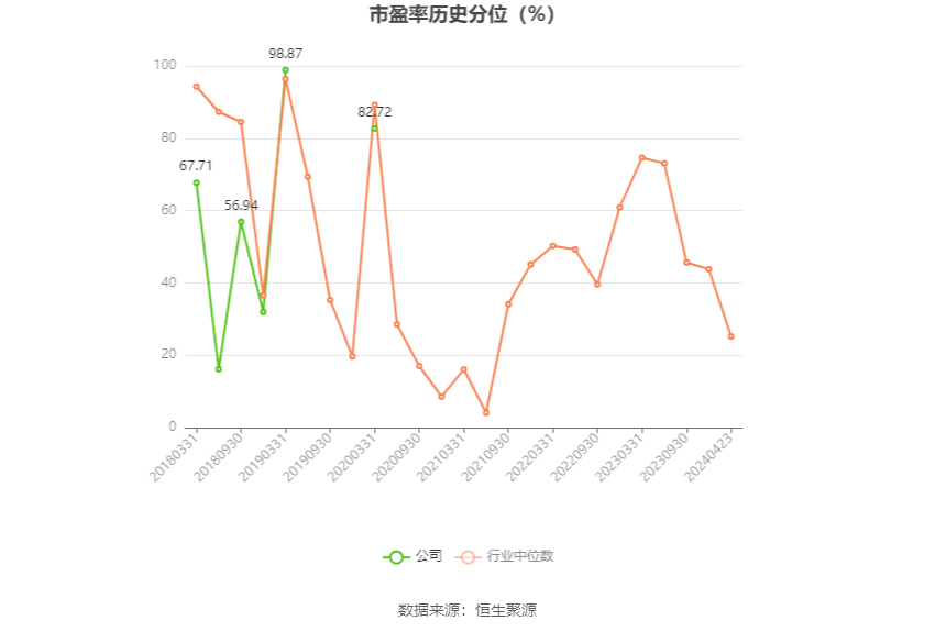 市盈率为负时,不显示当期分位数,会导致折线图中断。