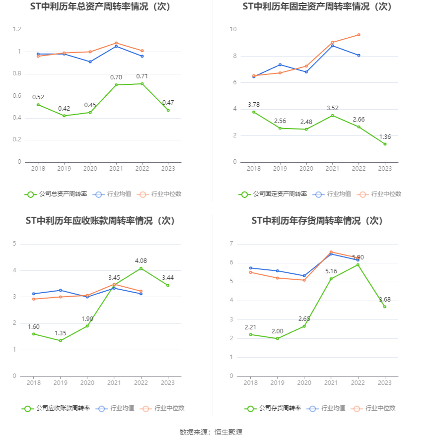 数据统计显示,ST中利近三年营业总收入复合增长率为-21.64%,在线缆部件及其他行业已披露2023年数据的23家公司中排名第23。近三年净利润复合年增长率为13.96%,排名12/23。