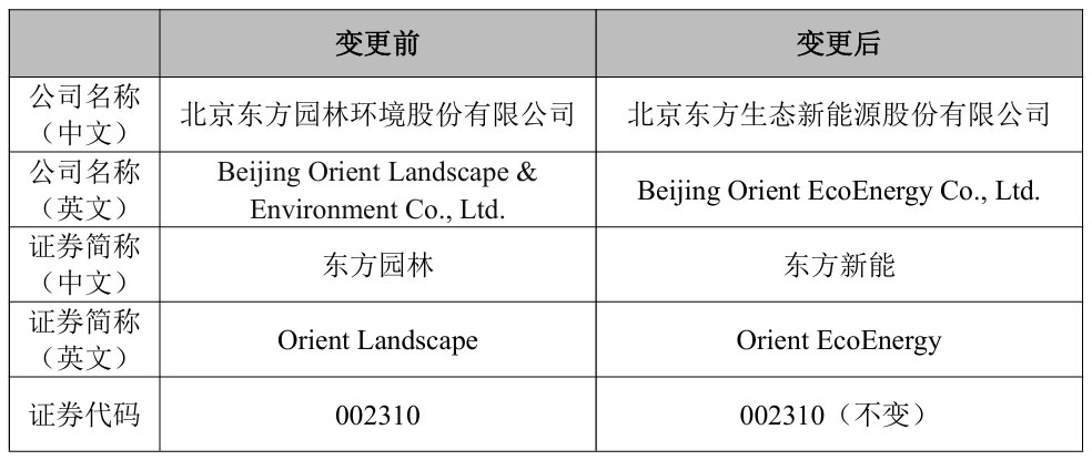 去年12月,东方园林刚刚把名称变更成了“东方新能”。