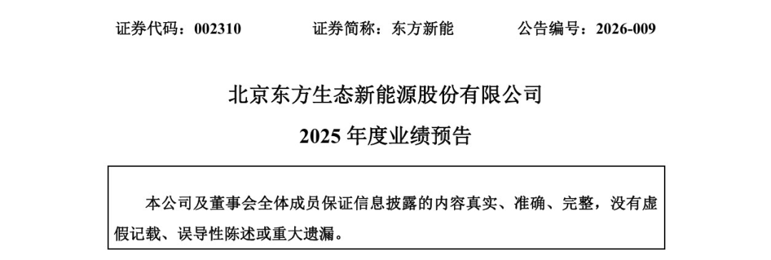 1个多月后,一年一度的业绩预告季又来了,东方新能也赶在1月底发布了自己的2025年度业绩预告。