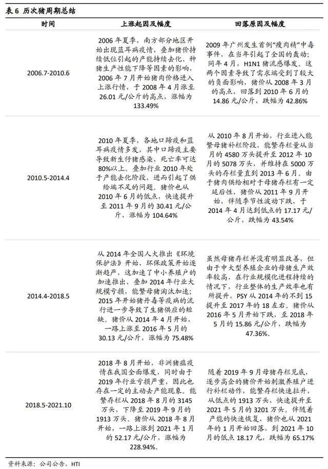 从 2006 年开始,我国共经历了四轮猪周期的行情: