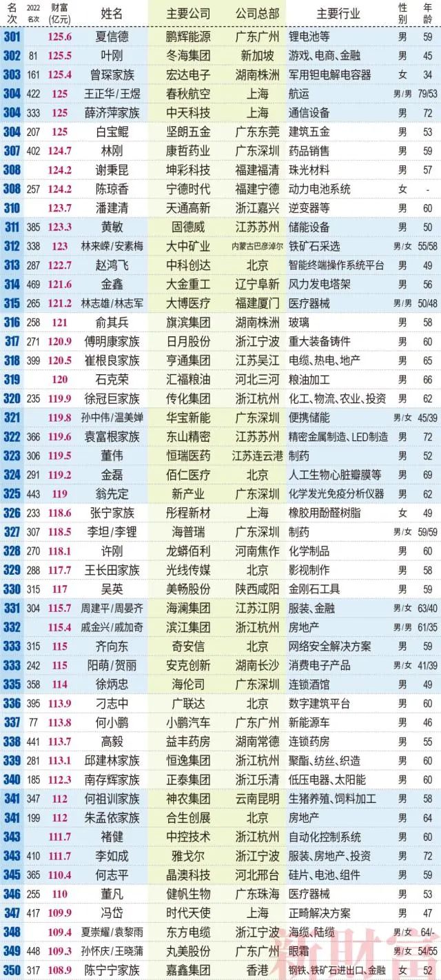 10、海大集团谭莉莉以101.1亿元,位居第376位;