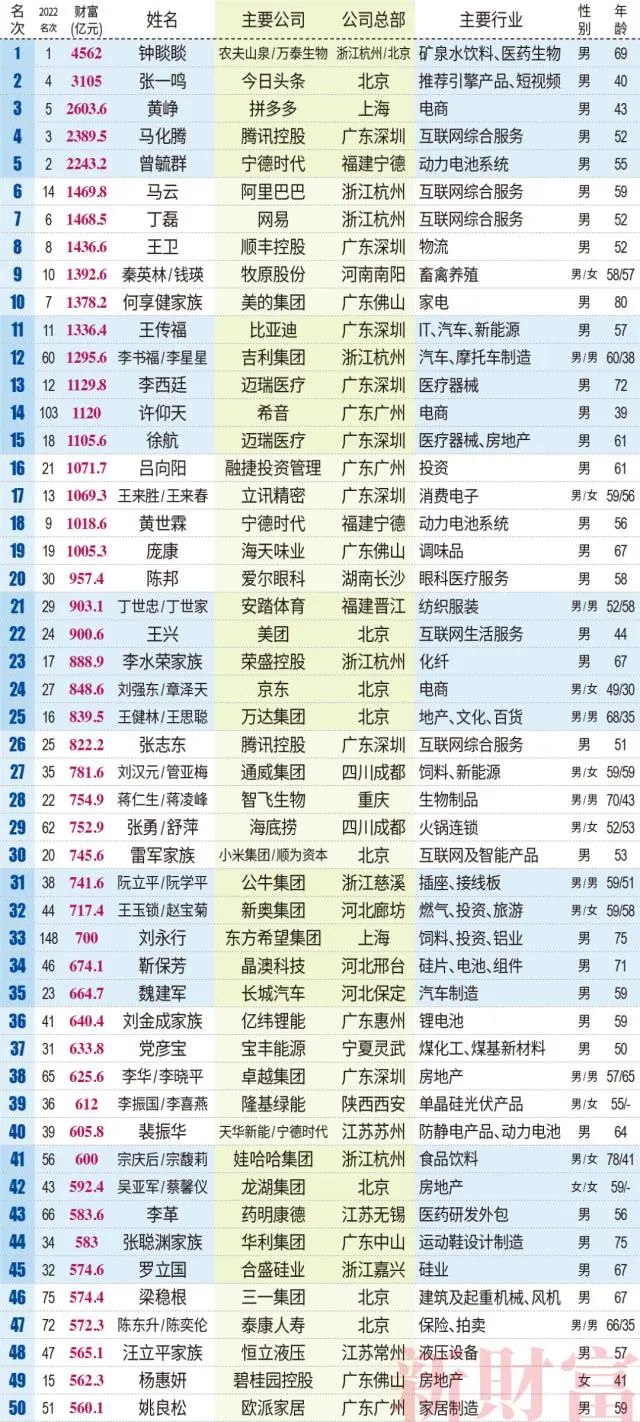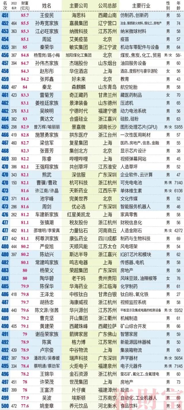 2023新财富500富人榜