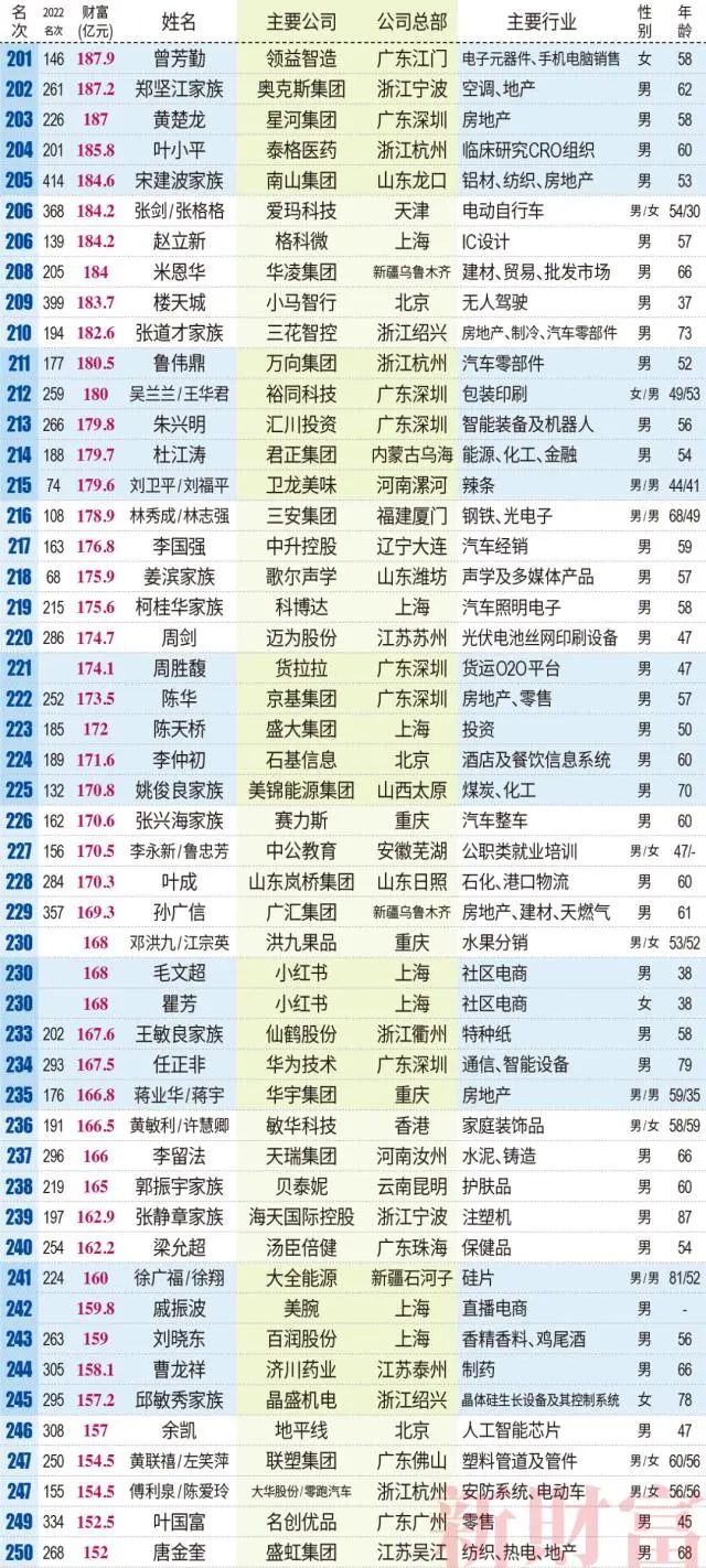 8、海大集团许英灼以151.7亿元,位居第251位;