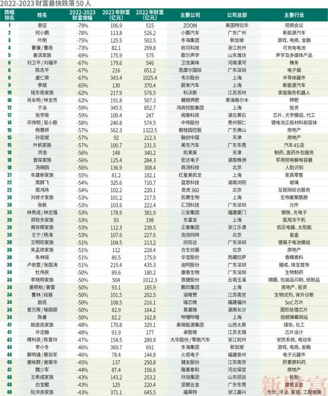 2022-2023财富最快跌落50人