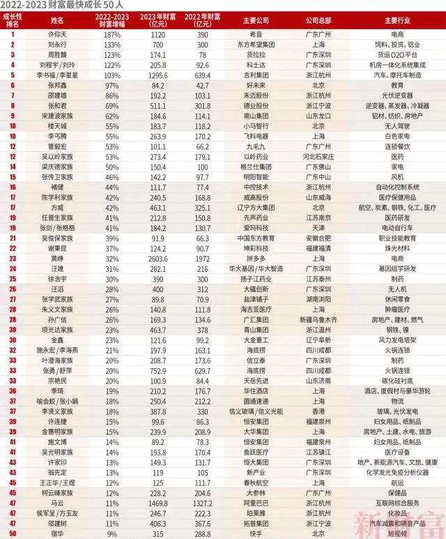 2022-2023财富最快成长50人