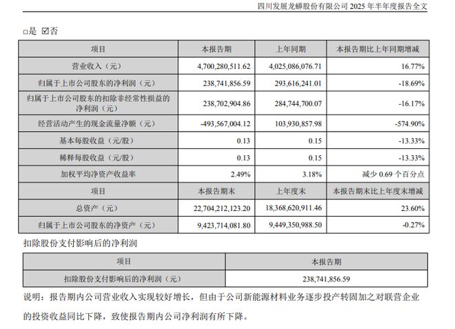 8月19日,川发龙蟒(002312.SZ)披露2025年半年报。公司上半年实现营业收入47亿元,较上年同期增长16.77%;归属于上市公司股东的净利润2.39亿元,基本每股收益0.13元/股。