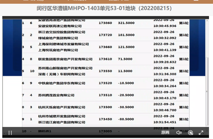9月27日,上海第三批集中供地第二日,4宗地块进入现场竞价环节。闵行区华漕镇MHPO-1403单元53-01地块吸引9家竞买人参与现场竞价,触及中止价后转入一次性报价环节,最终,南山控股(002314.SZ)旗下的两家公司苏州南山新程房地产开发有限公司和深南(无锡)车联网有限公司组成的联合体以17.355亿元的总价竞得,成交楼板价为38136元/平方米,房地联动价为66095元/平方米。