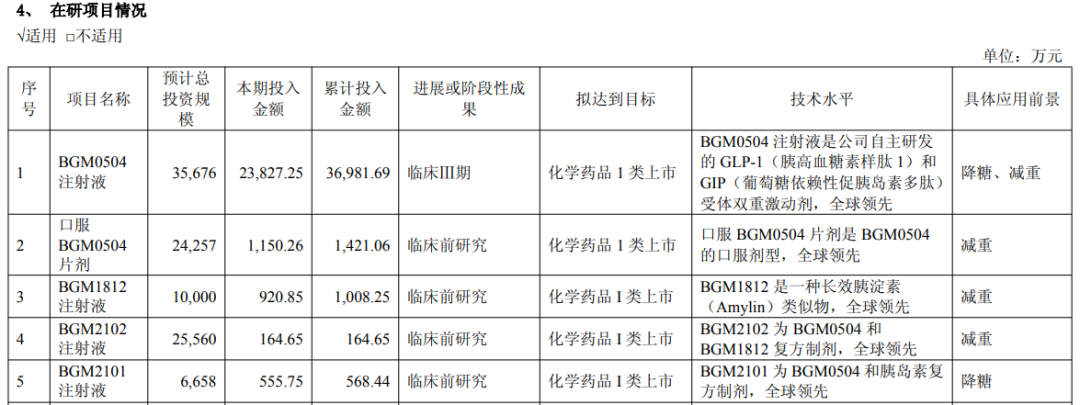 博瑞医药在GLP-1 赛道的布局,恰恰具备类似的“打包属性”。一方面,剂型多元化:公司既有口服小分子 GLP-1 激动剂(BGM0504 片剂),也有长效注射制剂(BGM1812),覆盖了未来两条最重要的商业化路径。口服剂型契合患者依从性需求,长效注射则更符合慢病管理趋势。