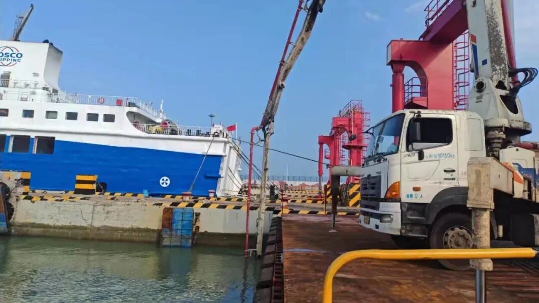 水下混凝土护坦浇筑是此前泊位修复工程中长期存在的技术难点与施工痛点。传统水下浇筑工艺常面临水下混凝土离散性大、浇筑面平整度控制困难、与基底结合不紧密、基床灌浆不密实等突出问题。针对这些问题,海峡股份新海轮渡技术团队依托多年的技术积累,通过深入现场调研与持续自主创新,从“工艺优化、材料优选、质量管控”三个维度系统性地提出并实施修复方案,有效地解决了相关技术难题。这一突破不仅显著提升了泊位基床修复后的整体适用性、耐久性,也为同类泊位修复工程提供了可借鉴、可推广的宝贵实践经验。