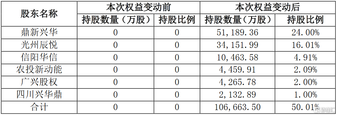 此次权益变动后,鼎新兴华持有公司51189.36万股股票,其一致行动人广兴股权持有公司4265.78万股股票,二者合计持有公司55455.14万股股票,持股比例26%。鼎新兴华为公司第一大股东,且其与一致行动人广兴股权实际可支配的上市公司表决权足以对公司股东大会的决议产生重大影响,鼎新兴华成为公司控股股东。