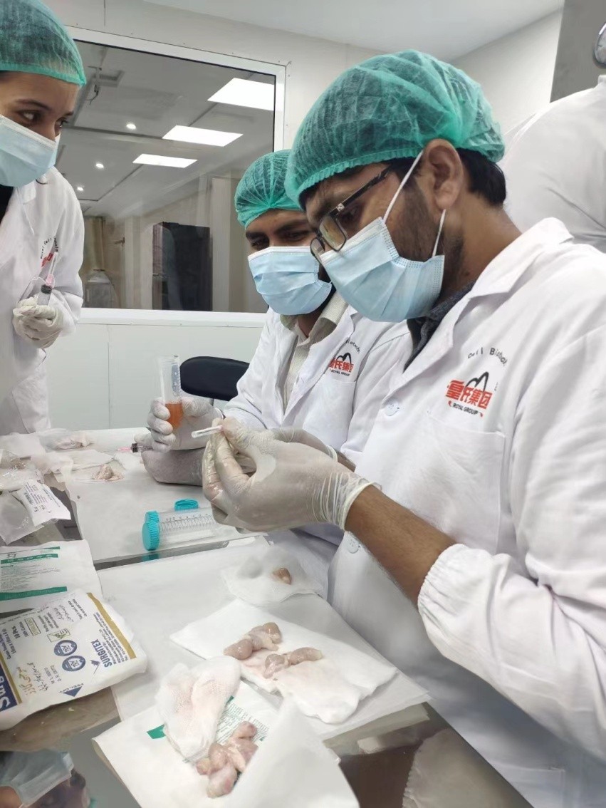 图为皇氏赛尔巴基斯坦员工正在进行相关实验