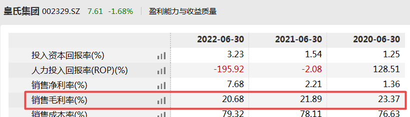 除此之外,皇氏集团销售毛利率也逐年下滑,数据显示,2020年中期—2022年中期皇氏集团销售毛利率分别为23.37%、21.89%、20.68%。对此,业内专业人士表示,虽然皇氏集团的净利润增长明显,但销售毛利率的下降也会给公司整体利润带来一定的影响。