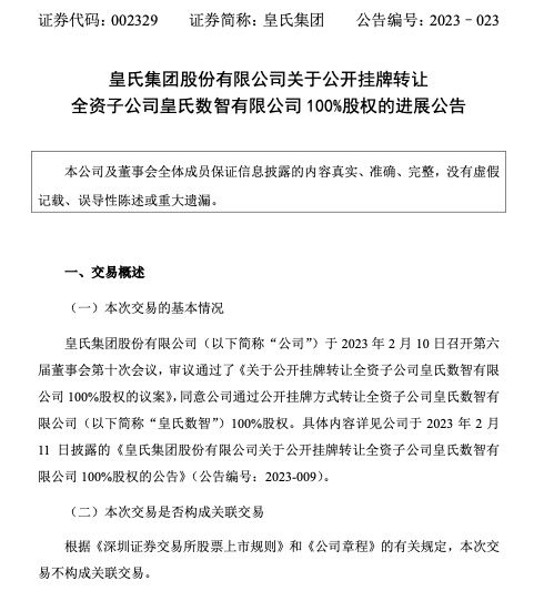 3月21日,皇氏集团股份有限公司(以下简称“皇氏集团”或“公司”)收到深圳证券交易所关注函。关注函要求皇氏集团说明转让全资子公司皇氏数智100%股权等事项是否存在其他“抽屉协议”、是否将导致公司向相关主体输送利益等情形。