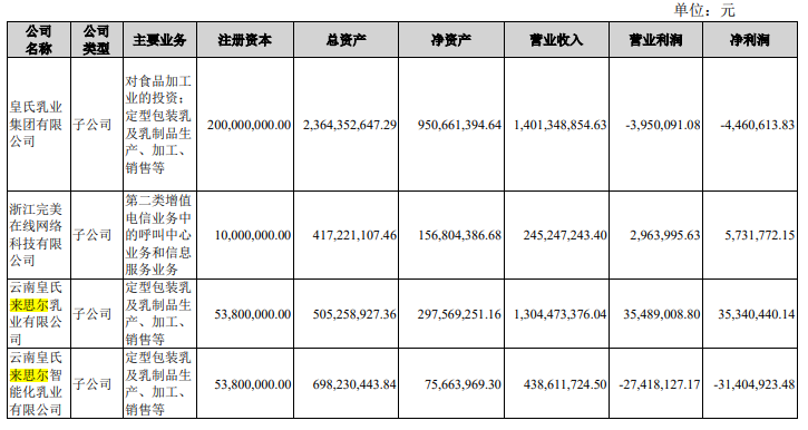 另一面,出售旗下控股子公司云南皇氏来思尔乳业有限公司(“来思尔乳业”)、云南皇氏来思尔智能化乳业有限公司(来思尔智能)股权。