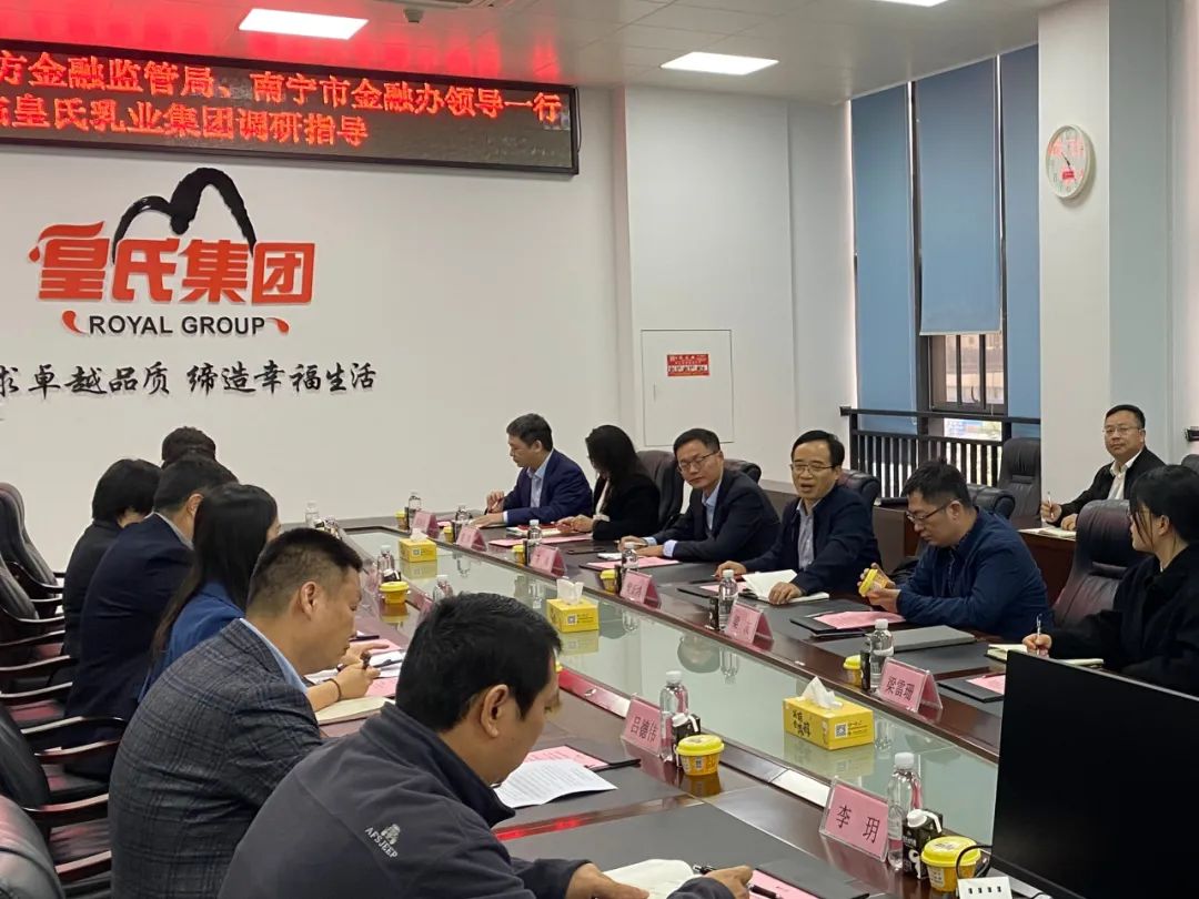 自治区地方金融监管局资本市场处、南宁市金融办、高新区金融办、北部湾银行南宁分行有关领导陪同调研,皇氏集团董事长及有关财务金融负责人参加座谈。