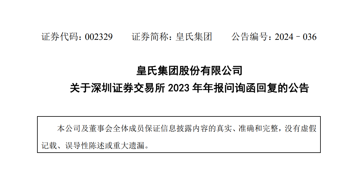 6月11日,皇氏集团发布关于深交所2023年年报问询函回复的公告。