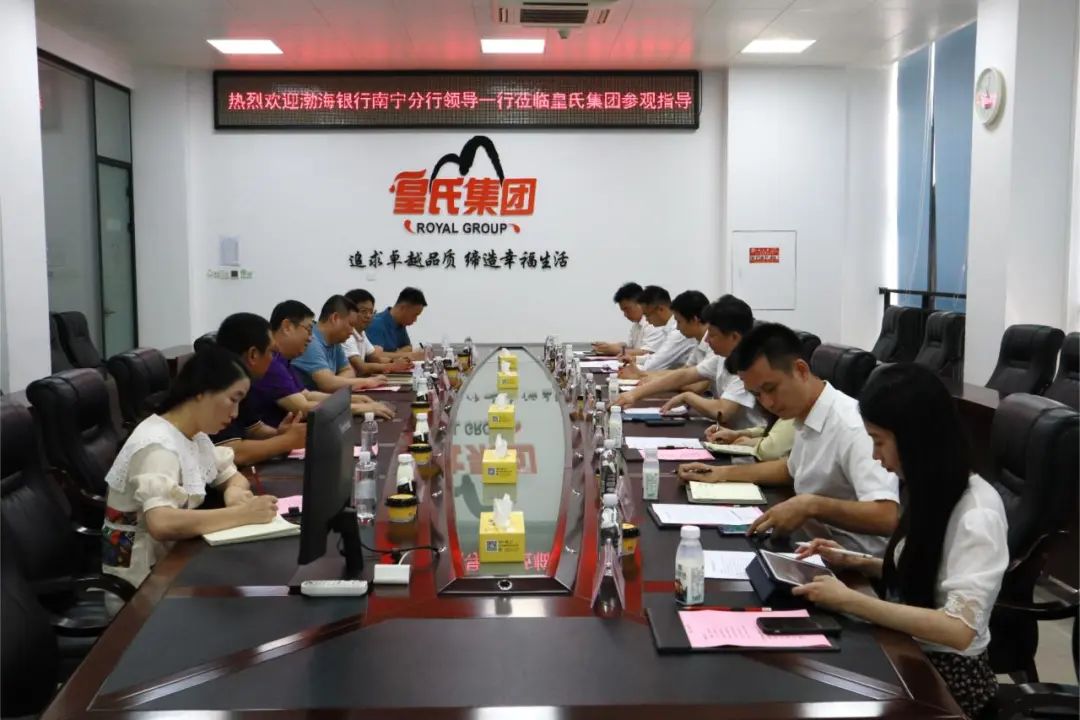 8月27日,渤海银行南宁分行行长张骏杰一行莅临皇氏集团参观指导,皇氏集团董事长黄嘉棣,皇氏集团财务总监吕德伟等公司领导热情接待并陪同参观。