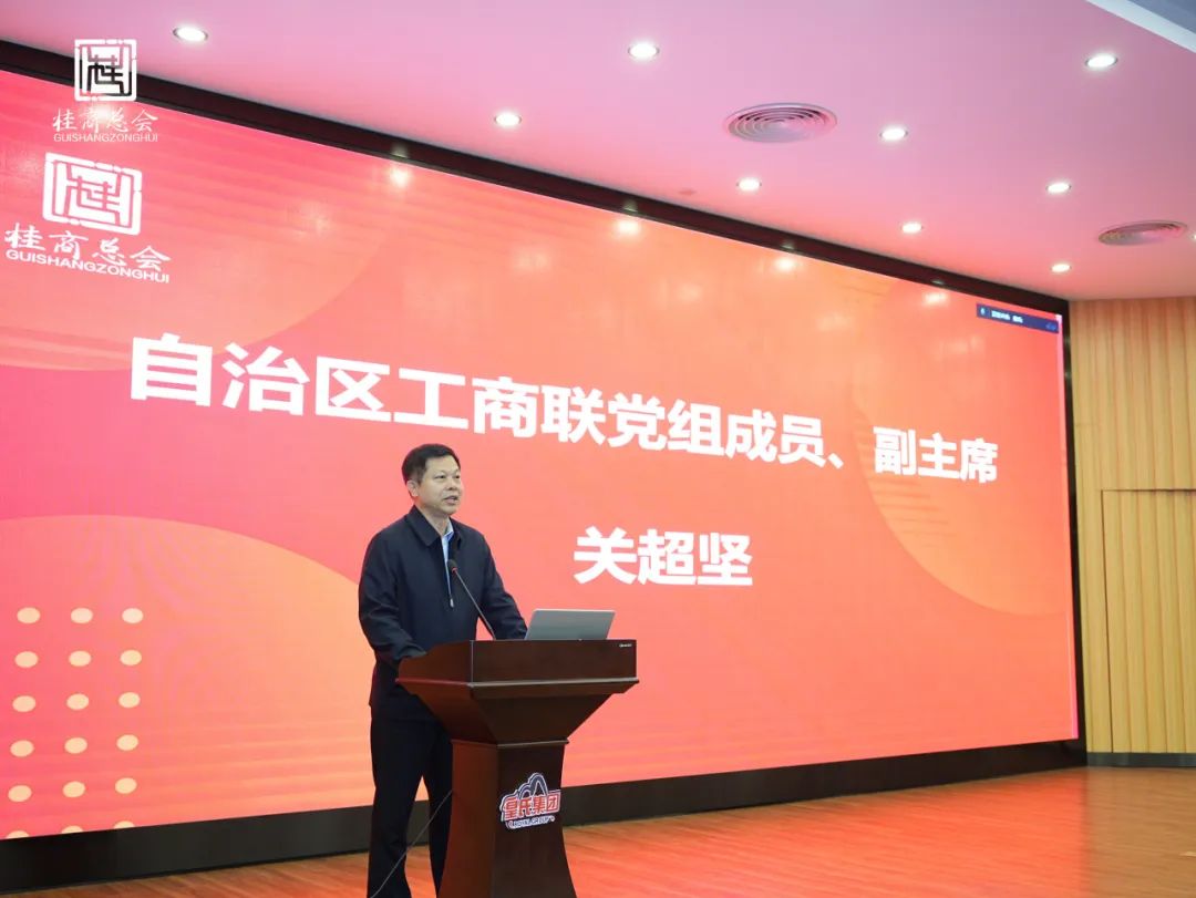 广西自治区工商联党组成员、副主席关超坚作重要指导讲话。他强调桂商总会一路以来获得了很多荣誉、办成了多件大事,是广西作用发挥最好、最有特色、领导最重视的商会之一。希望桂商总会在新一届领导班子带领下,认识时代大势,立足时代大潮,谋划发展大计,把桂商总会这张靓丽的名片打造得更加靓丽。