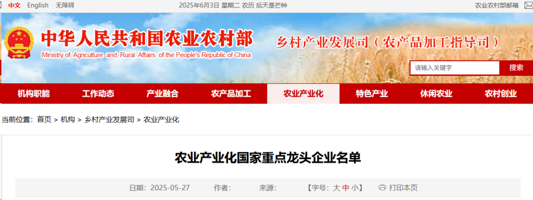 近日,农业农村部公布农业产业化国家重点龙头企业名单,皇氏集团凭借水牛乳全产业链布局、科技创新能力及对农业高质量发展的突出贡献,再次通过严格评审,继续保留“农业产业化国家重点龙头企业”资格。这一荣誉不仅是对皇氏集团综合实力的高度认可,更是对皇氏集团振兴中国乳业现代化、助力乡村振兴战略的充分肯定。
