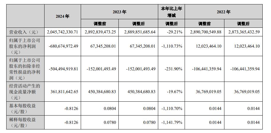 报告显示,皇氏集团公司 2024 年营业收入为 20.46 亿元,同比下降 29.28%;归母净利润为-6.81 亿元,同比下降 1110.73%;扣非归母净利润为-5.04 亿元,同比下降 231.90%;基本每股收益-0.81 元。