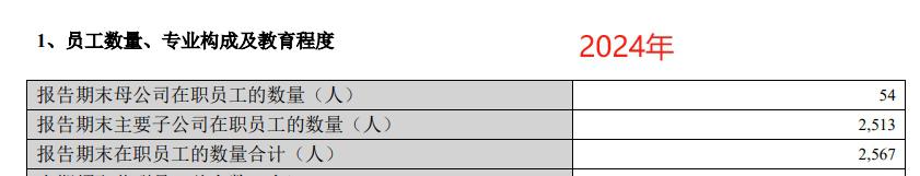 员工人数方面,2024 年公司在职员工 2567 人,较上年末的 2511 人增加 56 人。