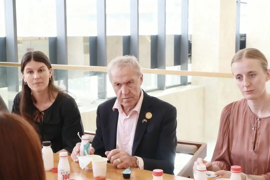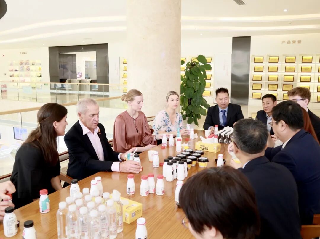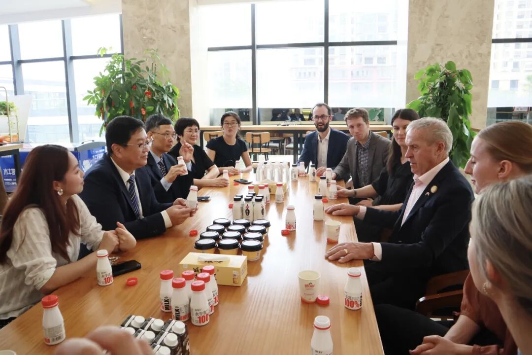 参观结束后,双方在产品品尝区进行座谈交流。公司精心准备了多款明星产品,包括极具广西地方特色的水牛奶系列、创新的发酵乳制品以及最新研发的高端产品,戴维·卡特爵士一行在品尝公司产品后,对水牛奶的独特口感以及纯正风味给予了高度评价和赞赏。