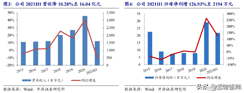 2021H1受2020年同期高基数影响,营业收入同比下滑10.28%;归母净利润为2194万元,同比增长126.93%。