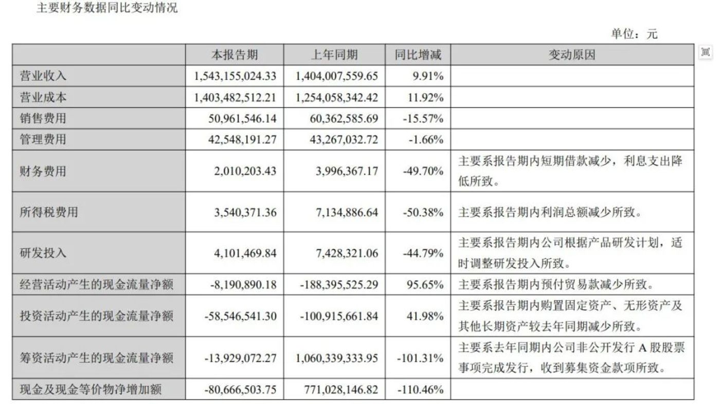 过去半年里,得利斯降低了研发、管理、销售等多项成本费用。