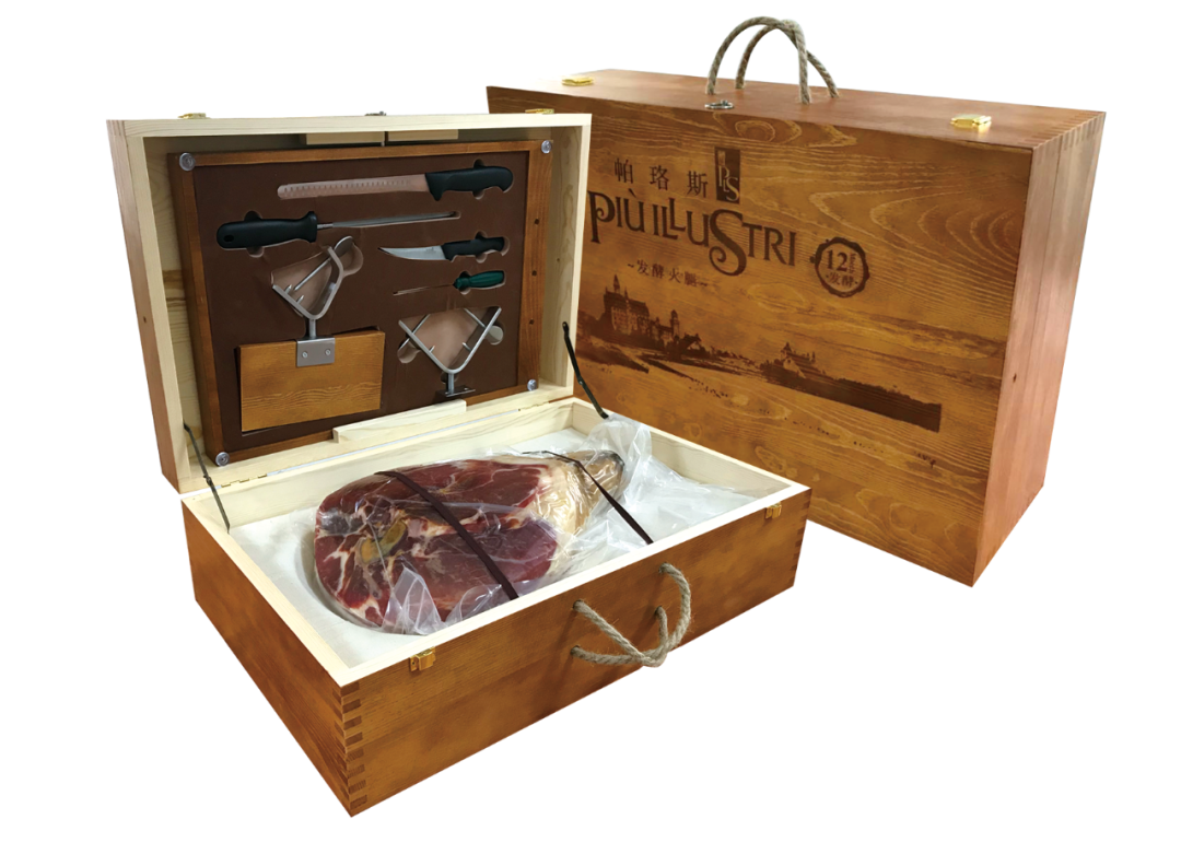据介绍,得利斯帕珞斯火腿是从意大利引进整套生产线和技术工艺,聘任意大利原产地专家团队参与每个环节,萃取中国五千年美食精华,创出新品帕珞斯火腿。精选欧得莱品种猪后腿,经窖储发酵加工而成,自然成熟,不添加任何香辛料和化学添加剂,极大保存了猪肉的天然品质。每条帕珞斯火腿全程由意大利专家担纲处理特殊工艺,并由高级技师参与纯手工制作。整个生产过程最短12个月,有超过2万种有益菌类和生物酶参与分解脂肪和蛋白质,释放出有益活性氨基酸,富含人体必需微量元素,被誉为肉制品中的“美食之王”,是与红酒、奶酪并称三大发酵食品。
