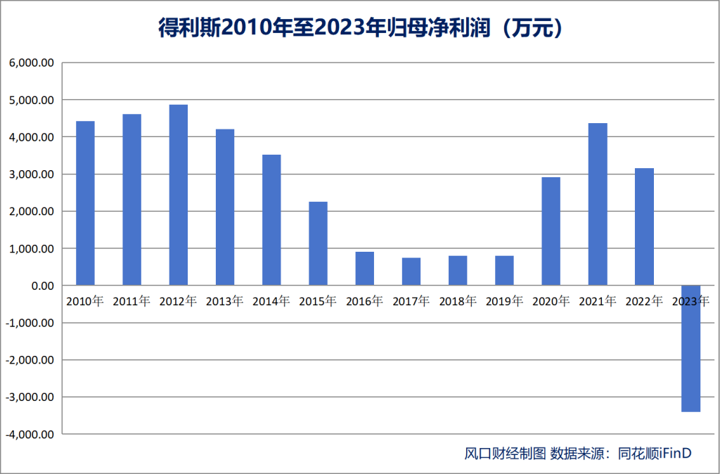 时间前溯,2024年1月31日,得利斯披露《2023年度业绩预告》,预计2023年度归属于上市公司股东的净利润为-1300万元至-1000万元。