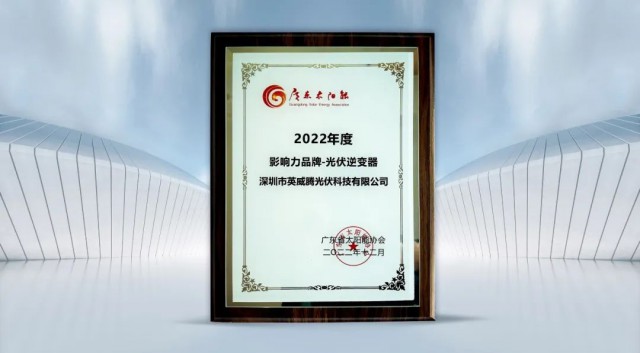 等多项荣誉,此次摘得2022年度“最具影响力品牌-光伏逆变器”荣誉,再次彰显了英威腾光伏的专业实力和强劲的品牌影响力。