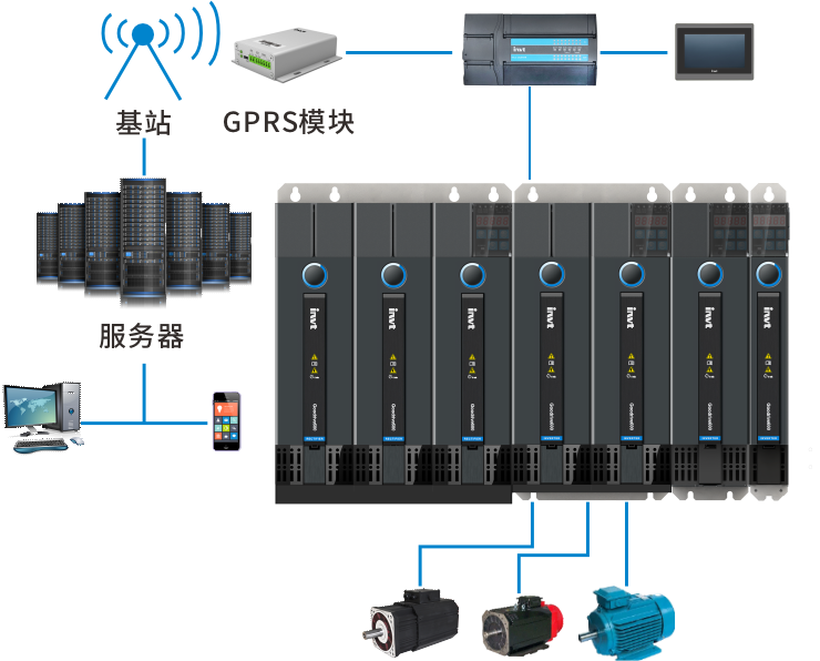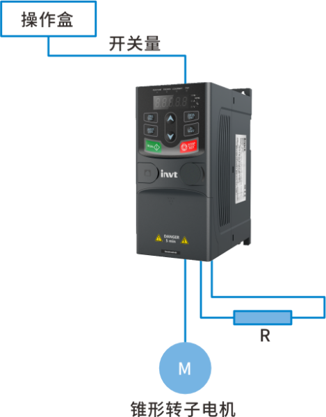 采用GD20-09系列起重专用变频器,基于锥形转子电机启停特性,软件设计匹配电机抱闸动作所需励磁电压变化,实现宽范围调速,并保障启停可靠不下滑。