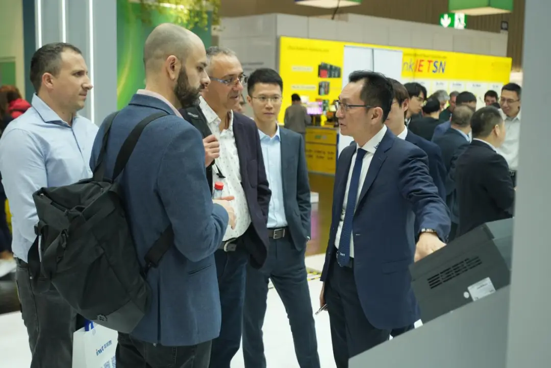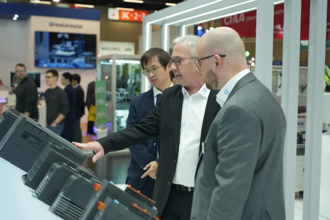 现场人流如织,来自欧洲的客户纷纷驻足,与 英威腾 专家团队进行深入交流,共同探讨产品亮点、案例实践和行业发展趋势。直播与抽奖活动更是将气氛推向高潮,让观众在感受科技魅力的同时,收获满满惊喜。