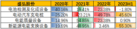 拆分公司过去的业务结构,由图可知,公司电能质量设备和电池检测及化成设备业务增长乏力,业绩增长主要由电动汽车充电桩和新能源电能变换设备业务驱动,2023H1拉动效应分别为45.6%和55.3%。