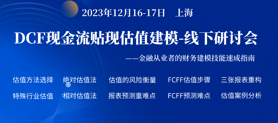 2023年12月16日-17日,我们推出《DCF现金流贴现-建模技能速成指南》线下精品研讨会,全流程快速上手实操,希望能帮大家少走弯路。