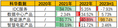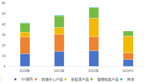 2023H1新能源产品收入15.85亿元,占比46.67%;IDC服务收入6.48亿元,占比19.08%;数据中心产品收入6.39亿元,占比18.82%;智慧电能产品收入4.92亿元,占比14.49%。