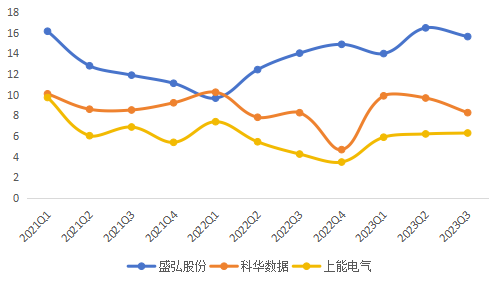 从盈利能力看,储能业务毛利率依次是盛弘股份科华数据上能电气,主要是公司储能业务收入以境外高质量客户为主,价格接受度普遍较高。