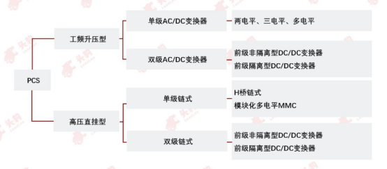 从技术路线来看,PCS按照电路拓扑结构和变压器的配置方式,可分为工频升压型和高压直挂型。