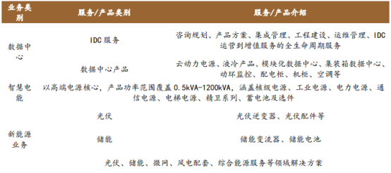 科华数据——国内智慧电能(UPS)领军企业,早期主营UPS业务;2007年推出光伏逆变器等产品进入新能源领域;2009年布局UPS下游数据中心业务。其核心业务涵盖数据中心、智慧电能、新能源领域。