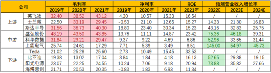 从增长环节来看,在双碳政策推动下,光伏等新能源发电占比持续提高,带动储能需求增长,行业增速预期普遍较高。
