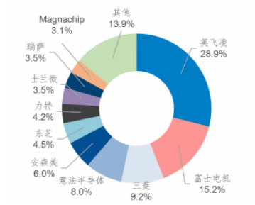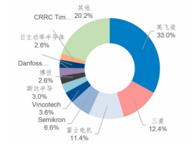 上游——电子元器件供应商,据英飞凌统计,全球IGBT市场基本由国外企业垄断,英飞凌为行业龙头,2021年在全球分立/模组IGBT市场份额达28.9%和33%。国内IGBT行业起步晚,正处于国产替代快速发展阶段,代表公司有士兰微、斯达半导等。