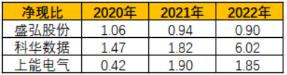 从净现比方面看,三家企业净利润的质量普遍较高,2022年科华数据净现比大幅增长,主要是公司加强了应收账款管理,销售商品、提供劳务收到的现金增加以及收到增值税留底退税增加。