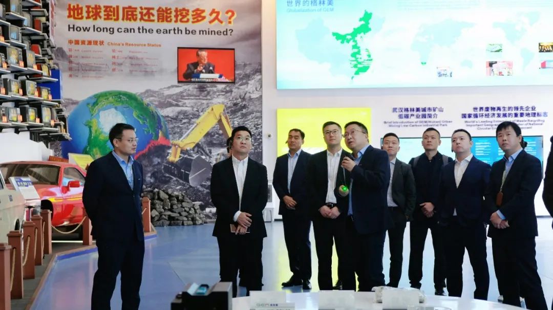 ▲陈鄂生副总裁(前排左二)一行参观格林美“城市矿山”博物馆