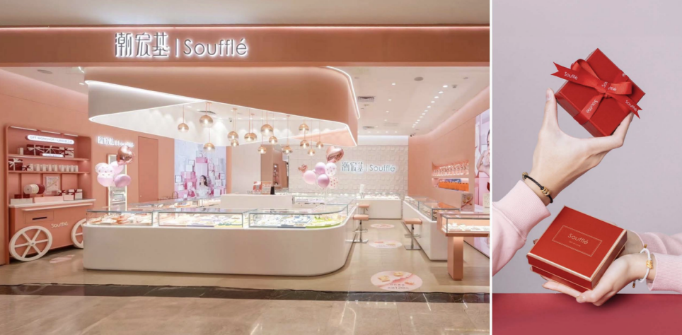 1997年,“潮宏基”品牌正式面世。避开竞争激烈的黄金市场,聚焦当时尚属蓝海的K金与镶嵌类产品,精准定位年轻消费群体。这一差异化战略使潮宏基成功开辟细分市场,在2010年顺利登陆深交所。