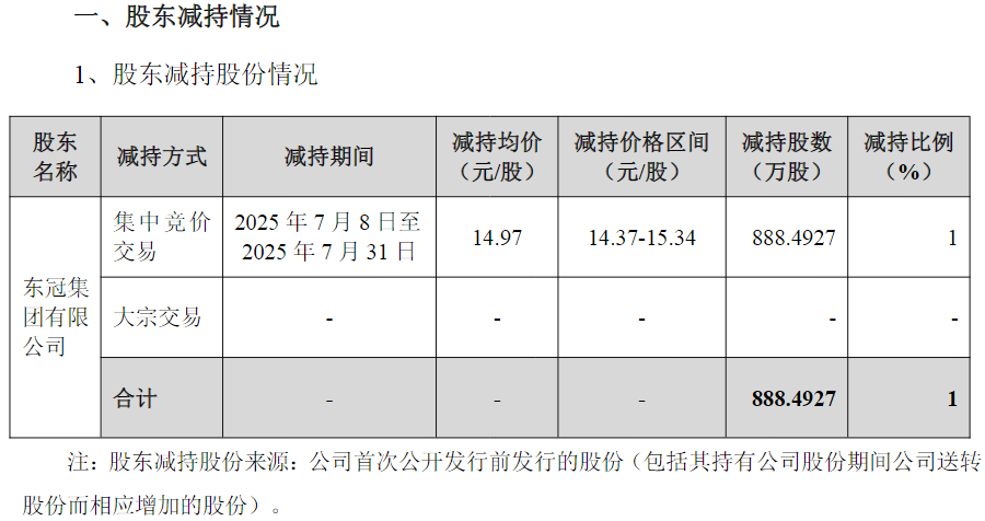 在股价大涨之后,潮宏基第二大股东就开始计划进行减持,其减持股份预披露公告发布时间也在2025年6月份,2025年9月29日晚间,潮宏基发布了关于持股5%以上股东减持计划期限届满暨实施情况的公告。该公告显示,公司股东东冠集团有限公司(以下简称“东冠集团”)通过集中竞价方式减持公司股份共计888.4927万股,占公司总股本的1%。东冠集团的减持价格为14.97元,据此计算,其套现金额约为1.33亿元。在完成本次减持计划后,东冠集团持有潮宏基7.67%的股份,仍为公司第二大股东。